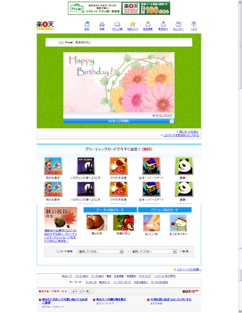 楽天グリーティング(英:Rakuten Greeting)は、数分の簡単操作でオシャレなグリーティングカードを送信できる無料Webサービスです。カードのデザインを選んでメッセージなどを入れるだけで、PCや携帯に手軽に送信できます。デザインの種類は季節やイベントごとに豊富なので、相手の嗜好に合うものがある可能性が高いでしょう。誕生日や季節の挨拶、日頃の感謝を伝えたい時にはテキストメールではなく印象に残るアニメーション付きカードを送って相手を喜ばせてみませんか。